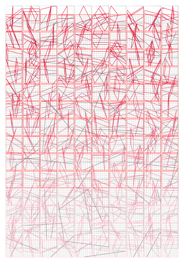 This work was directly inspired by the indexical drawings of artist Hanne Darboven. While much has been written on the artist's oeuvre, much has also not be so explicated. The current sketch is therefore an attempt to draw out an explanation-as-interpretation of one of the artist's drawing. Made over graph paper, a series of cells are traversered by diagonals that both divide and connect.