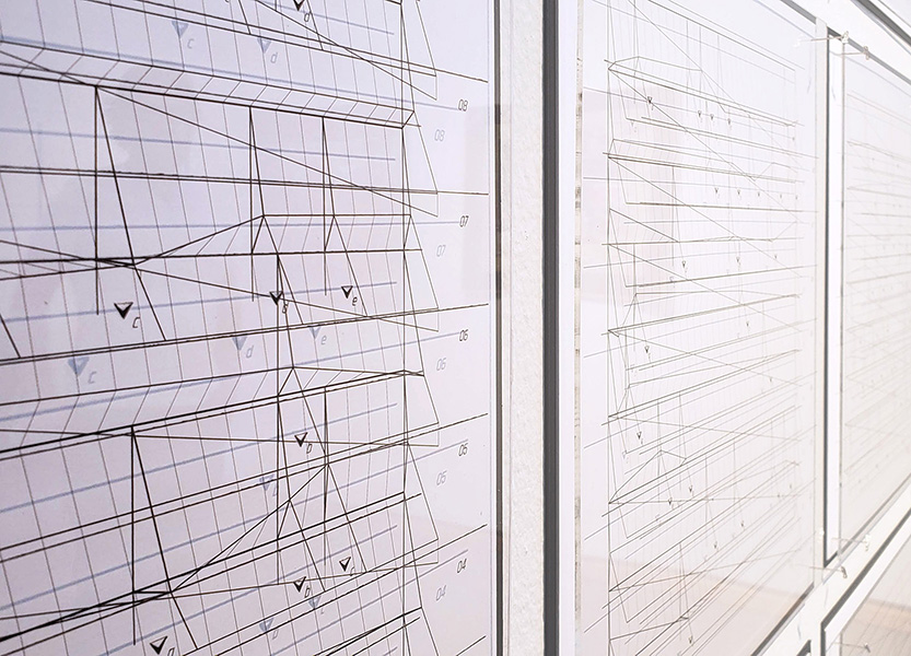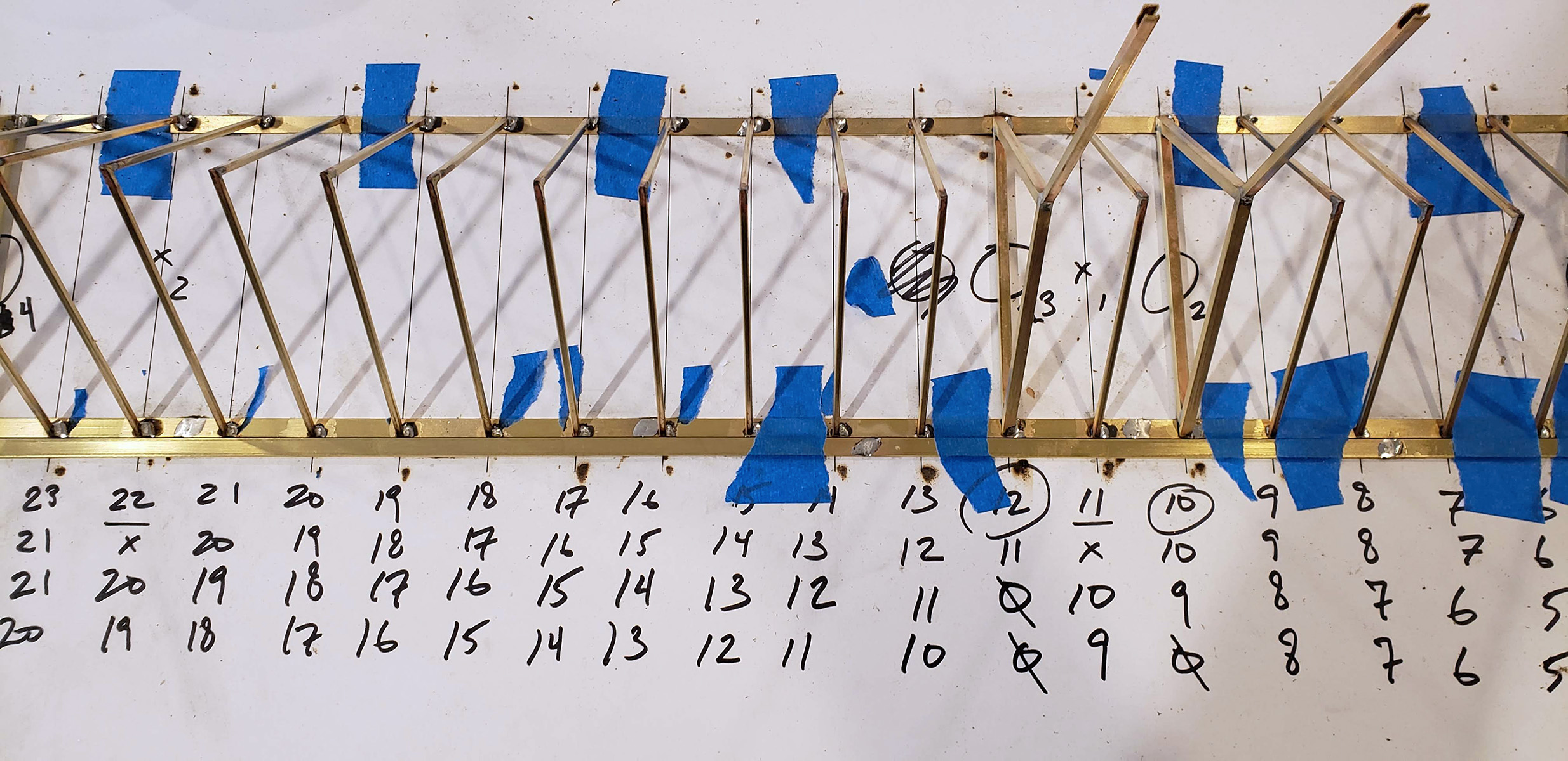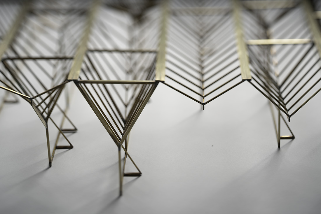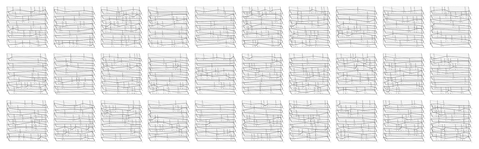 The basic form for the following sketch takes inspiration from irrigation lines, assembles them in rows, and translates their collective form into a presentation akin to a nonsensical typing of a abstract characters, line by line, strung together by a carriage return.