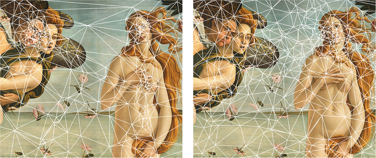 Implementation of Delaunay Triangulation to compare distribution patterns of gaze data. Detail visualization. Monitor Group (left) and Gallery Group (right).